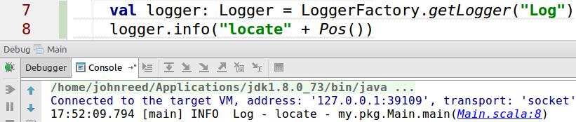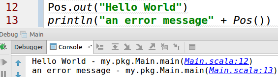 ^ Clicking on "Main.scala:12" will cause you to jump to Main.scala, line 12.